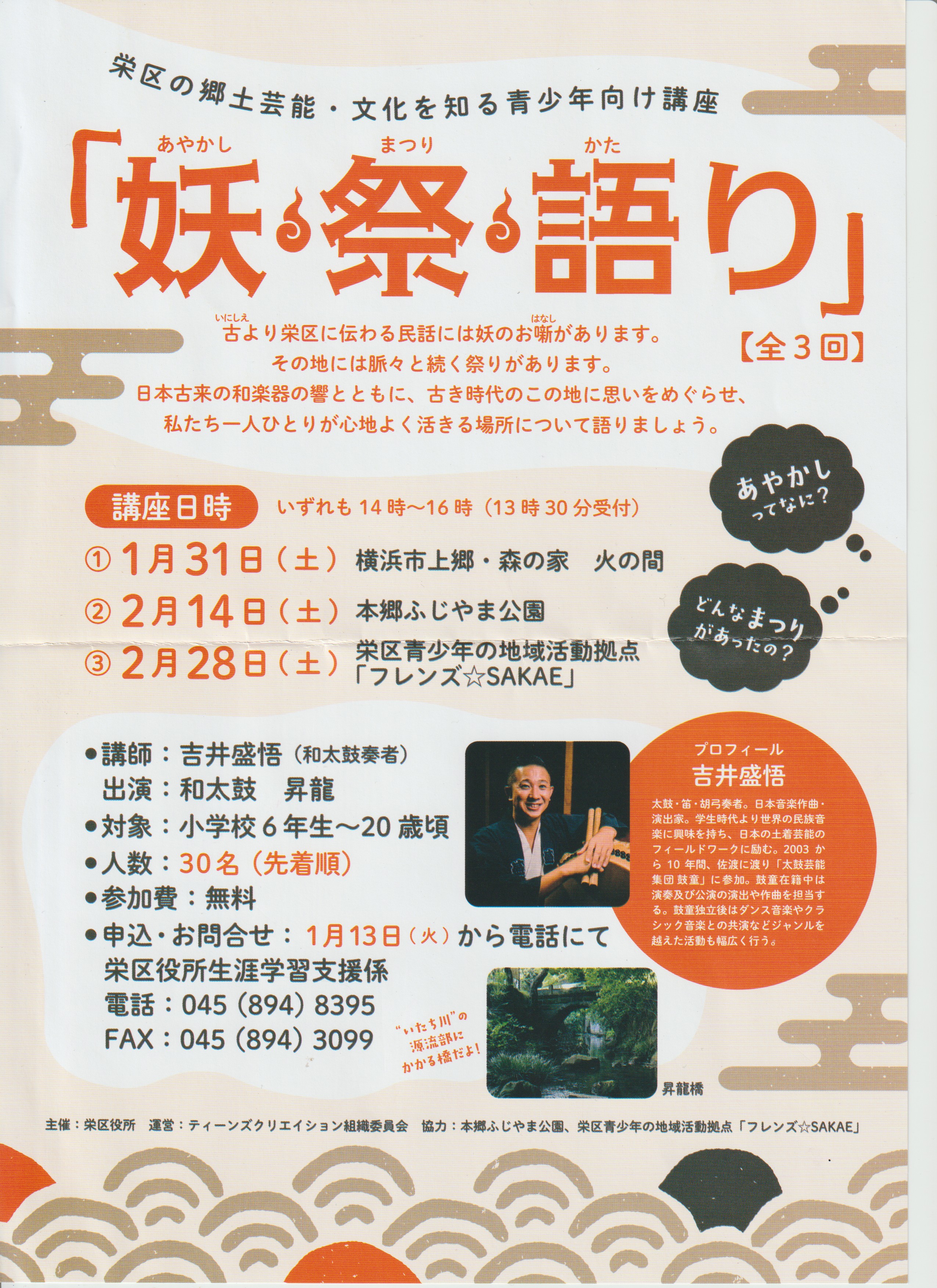 申込・お問い合わせ 栄区役所生涯学習支援係 電話:045(894)8395